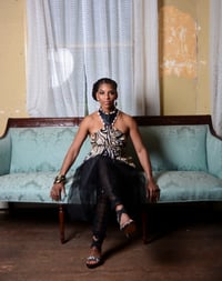 Tribal Africa Print Chiffon Halter Top with Leather Collar